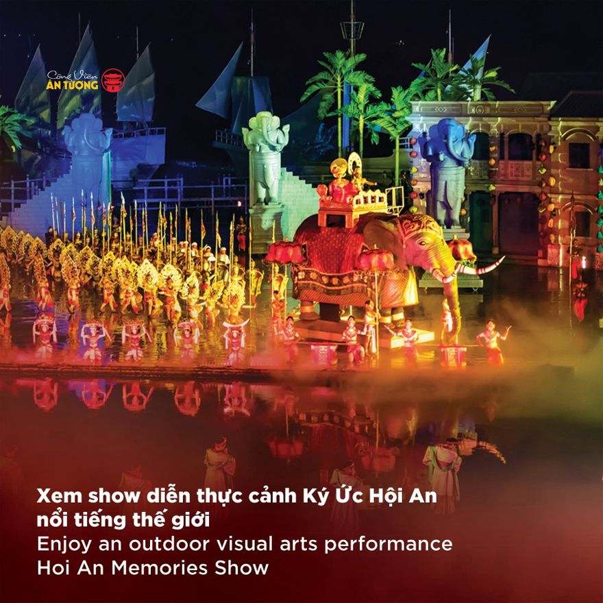 Show diễn thực cảnh Ký ức Hội An, là một vở múa hiện đại được dàn dựng công phu bởi sự kết hợp giữa âm thanh, ánh sáng cùng dàn diễn viên dày dặn kinh nghiệm biểu diễn sẽ đưa du khách trở về quá khứ của một Hội An thế kỷ 16 và 17.