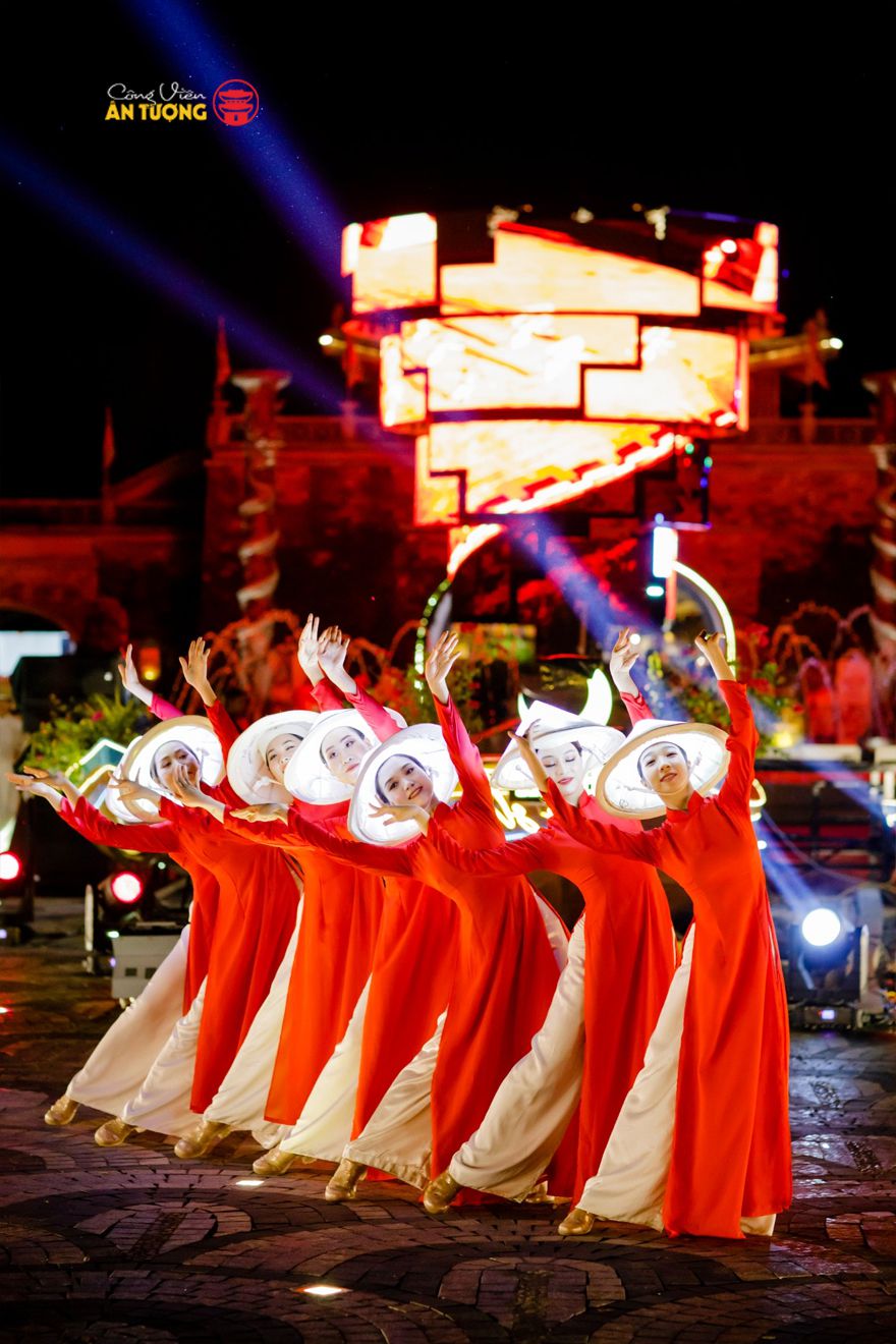 Màn trình diễn áo dài cũng là tiếc mục kết thúc chương trình biểu diễn thực cảnh Ký ức Hội An. Trong bối cảnh Hội An hội nhập những chiếc áo dài luôn là điểm nhấn cho vẻ đẹp của cô gái Việt.